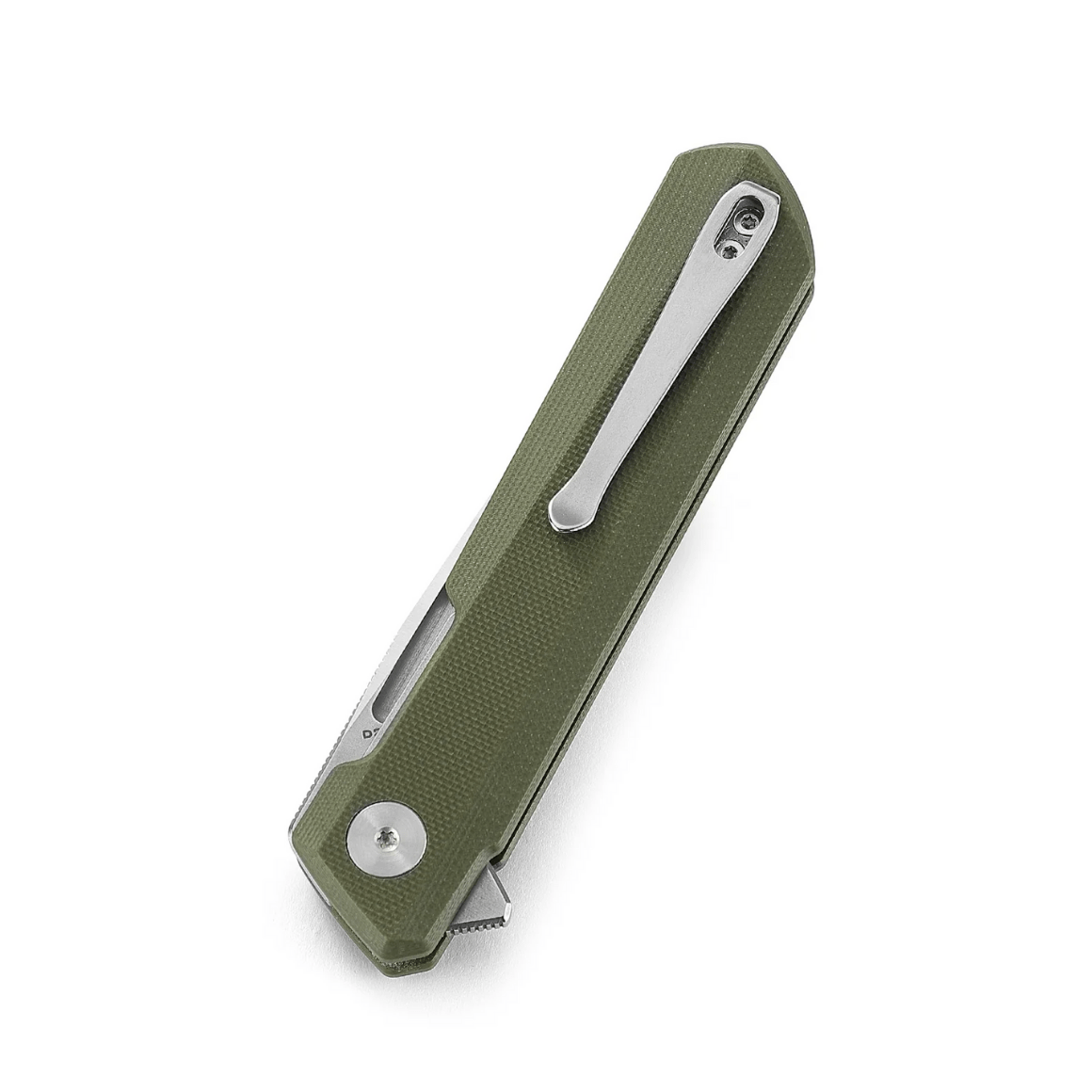 Rukoväť je vyrobená z OD green G10, čo je kompozitný materiál zo sklených vlákien stlačený so syntetickou živicou. Agresívna textúra črienok poskytuje pevný úchop, aj keď sú ruky mokré. Dvojpolohový pravý/ľavý deep carry clip umožňuje diskrétne nosenie noža vo vrecku v polohe tip-up.
