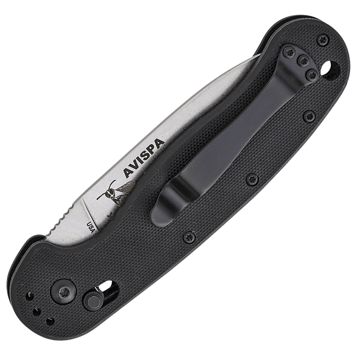 Avispa znamená v španielčine osa a tento zatvárací nôž s slide lock/crossbar lock mechanizmom je veľkým bratom skvelého Zancudo folderu. Avispa AUTO bol navrhnutý odborníkmi na prežitie z ESEE Knives, Mikeom Perrinom a Jeffom Randallom, a vyrobený spoločnosťou Blue Ridge Knives. Disponuje rovnakým tvarom čepele drop point, ale vo väčšej, schopnejšej veľkosti 3,5". S touto väčšou čepeľou potrebovali väčšiu rukoväť, a akú lepšiu platformu pre nôž zvoliť než úžasný Ontario Rat 1. Je to veľmi ergonomická rukoväť, ktorá je skvelá pre taktické aplikácie a pohodlná pri dlhodobom používaní. Jedinou nevýhodou Ontario Rat 1 bolo, že vždy mal liner lock. No už viac nečakajte - Avispa AUTO je tu! Absencia dodatočnej črienky rukoväte vytvorila extrémne štíhly profil a ľahko prenosný nôž s Avispa. Klieština je otočná do všetkých štyroch pozícií a nôž váži 5,36 unce.
