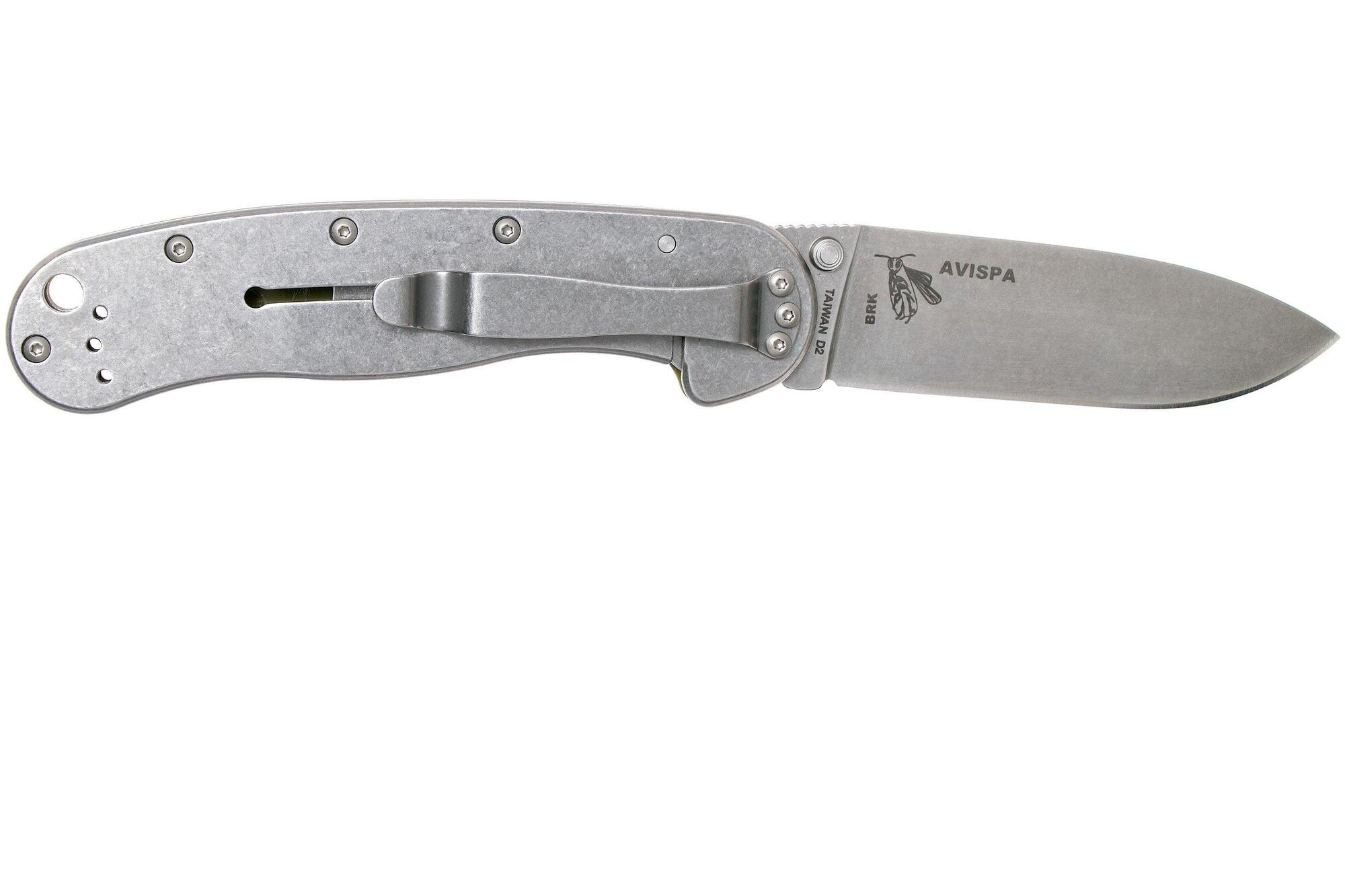 Avispa znamená v španielčine osa a tento frame lock zatvárací nôž je právom nazývaný veľkým bratom úžasného zatváracieho noža Zancudo. Avispa bol navrhnutý odborníkmi na prežitie z ESEE Knives, Mikeom Perrinom a Jeffom Randallom, a vyrobený spoločnosťou Blue Ridge Knives. Disponuje rovnakým tvarom čepele drop point, ale vo väčšej, schopnejšej veľkosti 3,5" s vynikajúcou nástrojovou oceľou D2. S touto väčšou čepeľou potrebovali väčšiu rukoväť a aký lepší nôž by mohli zvoliť ako úžasný Ontario RAT 1. Je to veľmi ergonomická rukoväť, ktorá je skvelá pre taktické aplikácie a pohodlná pri dlhodobom používaní. Jedinou nevýhodou Ontario RAT 1 bolo, že bol vždy len liner lock a nikdy sa nevyvinul do frame locku. No, už viac nečakajte - Avispa je tu. Absencia dodatočnej črienky rukoväte vytvorila extrémne štíhly profil a ľahko prenosný nôž s Avispou.