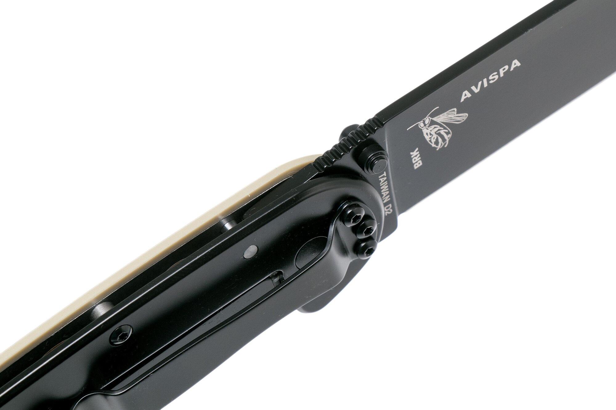 Avispa, čo v španielčine znamená osa, je veľký brat úžasného zatváracieho noža Zancudo. Tento nôž s frame lockom navrhli odborníci na prežitie z ESEE Knives, Mike Perrin a Jeff Randall, a vyrába ho spoločnosť Blue Ridge Knives. Disponuje rovnakým tvarom čepele drop point, avšak vo väčšej a schopnejšej veľkosti 3,5", vyrobenej z vynikajúcej nástrojovej ocele D2. S touto väčšou čepeľou potrebovali aj väčšiu rukoväť, a aká lepšia platforma by sa dala použiť než úžasný Ontario RAT 1. Je to veľmi ergonomická rukoväť, ktorá je skvelá pre taktické aplikácie a pohodlná pri dlhodobom používaní. Jedinou nevýhodou Ontario RAT 1 bolo, že bol vždy len liner lock a nikdy sa nevyvinul do frame locku. No už viac nečakajte - Avispa je tu. Absencia ďalšej črienky rukoväte vytvorila extrémne štíhly profil a ľahko prenosný nôž Avispa.