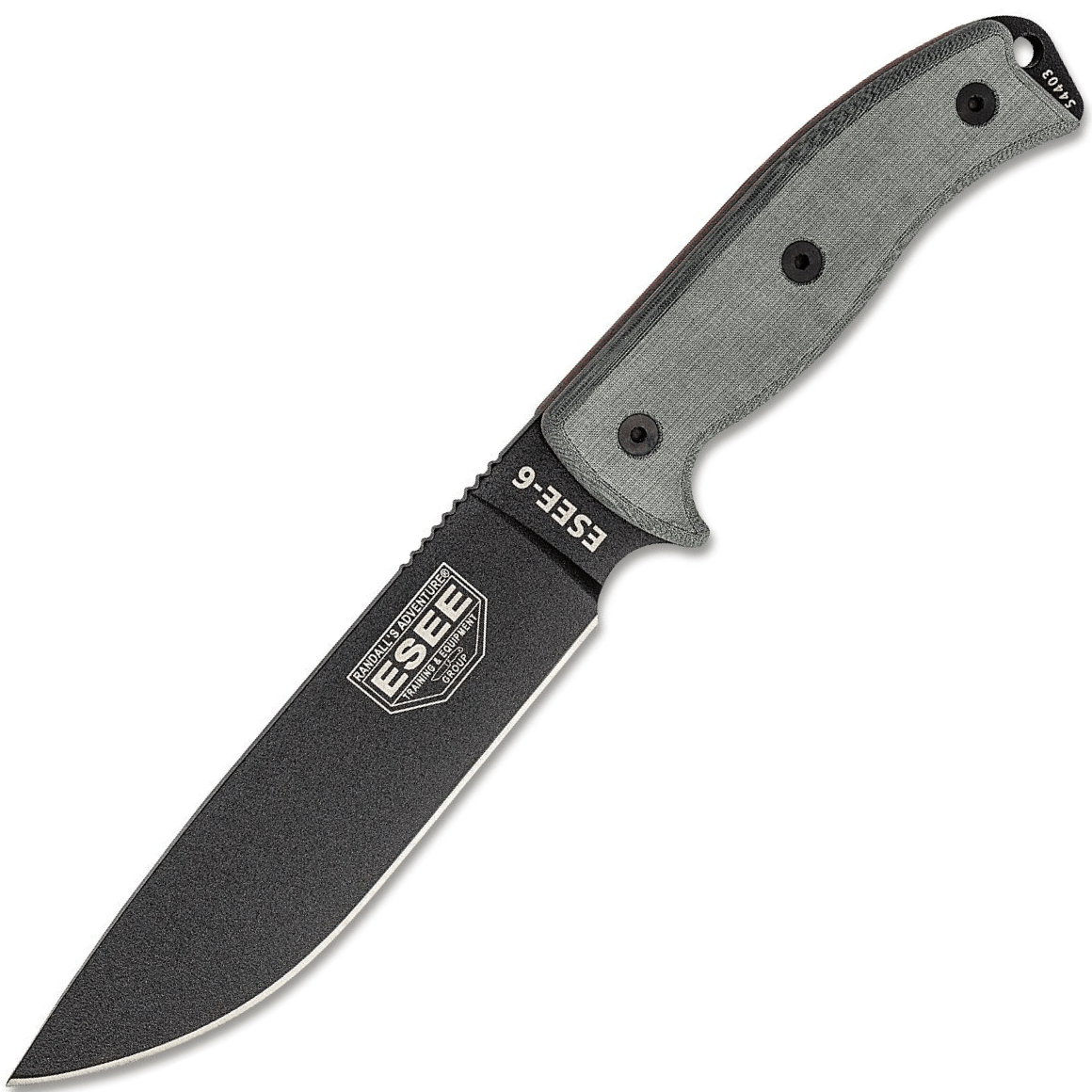 ESEE Knives Model 6 black blade, grey micarta handle, molded sheath - KNIFESTOCK