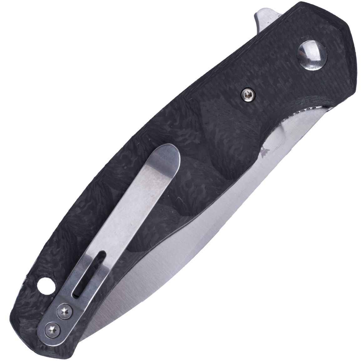 Čepeľ vyrobená z ocele Bohler N690 sa otvára flipperom a v otvorenej pozícii ju drží poistka Linerlock. Rukoväť je vyrobená z uhlíkových vlákien. Na konci rukoväte sa nachádza otvor na šnúrku. Nôž je vybavený klipom na nosenie vo vrecku.