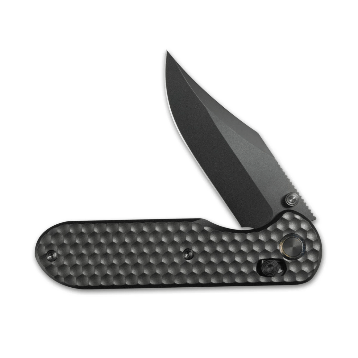 Rukoväť je vyrobená z black DLC 6AL4V titánu s textúrou včelieho plástu pre lepší úchop a odolnosť. Klieština je titánová a nastavená pre tip-up nosenie na pravej strane.