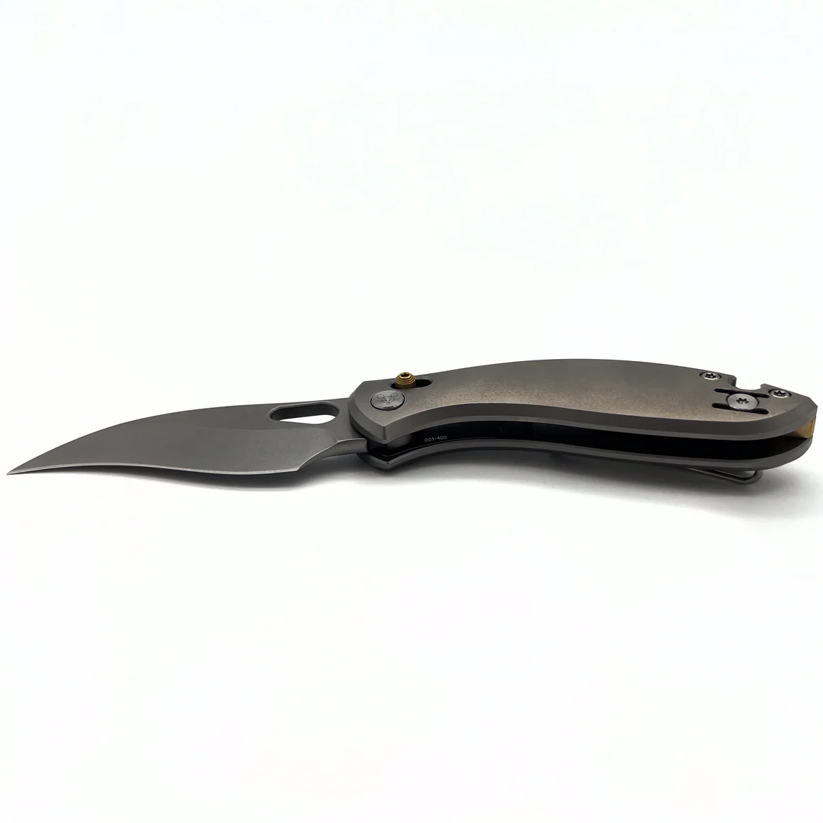 Odvážna reinterpretácia klasickej hawkbill čepele, navrhnutá pre precízne rezanie a neúnavný výkon. Inšpirovaná nožmi na tvrdé použitie, kombinuje stonewashed čepeľ z S90V ocele s dokonale tvarovanou rukoväťou z titánu, ktorá má výraznú textúru orange peel pre lepší úchop a štýl. Mosadzný backspacer pridáva jemný dotyk, zatiaľ čo crossbar lock zaručuje spoľahlivosť pri každej úlohe. Reverzibilný oceľový klip dopĺňa robustný charakter tohto prémiového noža, poskytujúc bezpečné a všestranné nosenie pre každú situáciu.