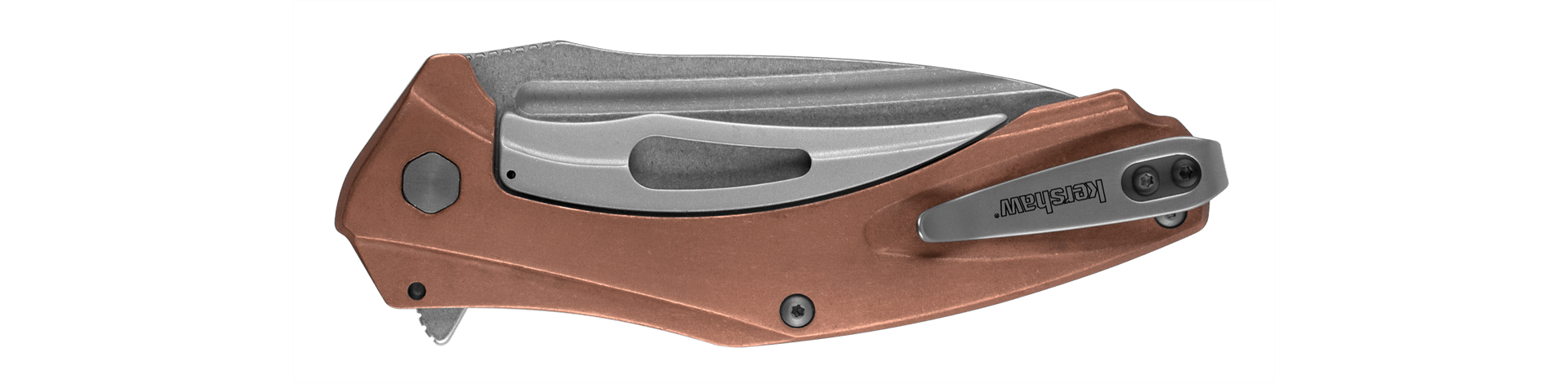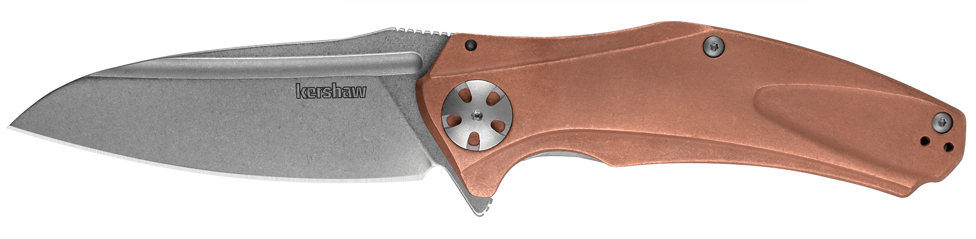Veľmi moderný a nadčasový Natrix XL. Ak máte radi pevné a väčšie nože, vezmite si do rúk tento XL. Medený XL Natrix. 3,7 "čepeľ je vyrobená z ocele D2. Je to nástrojová oceľ s vysokým obsahom uhlíka, ktorá je odolná voči opotrebovaniu. Je pevná a ponúka vynikajúce držanie hrán. Povrchová úprava Stone Wash. Medená, masívna rukoväť dodáva tomuto veľkému nožu skutočnú oporu; váži viac ako 8 uncí. Meď časom nadobudne patinu, vďaka čomu bude každý medený Natrix jedinečný. Systém guľôčkových ložísk, Kershaw KVT, na ktorých čepeľ jazdí, uľahčuje otváranie noža jednou rukou. Nôž má dvojpolohový klip, na nosenie na vrecku.