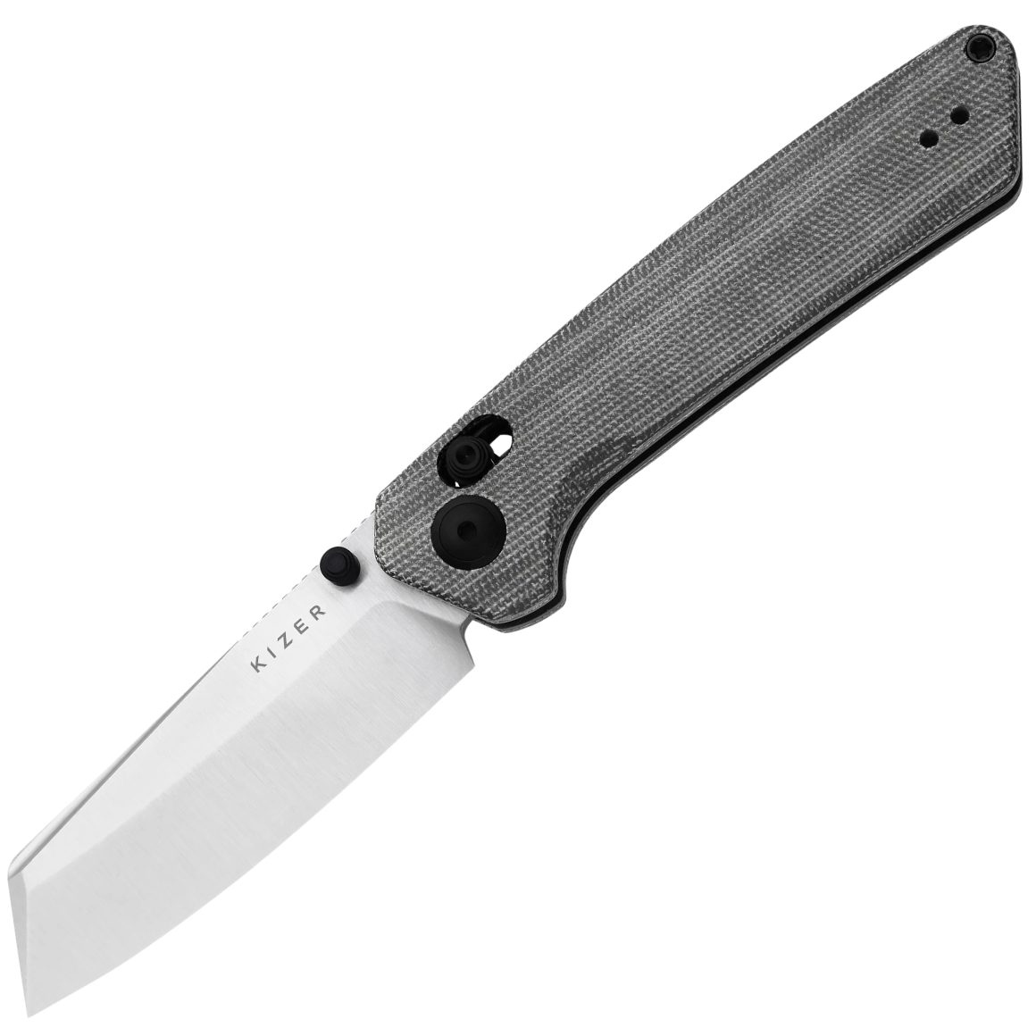 Patentovaný Clutch Lock mechanizmus od Kizer zaručuje pevné nasadenie čepele a bezpečné uzamknutie, zatiaľ čo obojstranné thumb study podporujú plynulú a obojručnú jednoručnú manipuláciu.