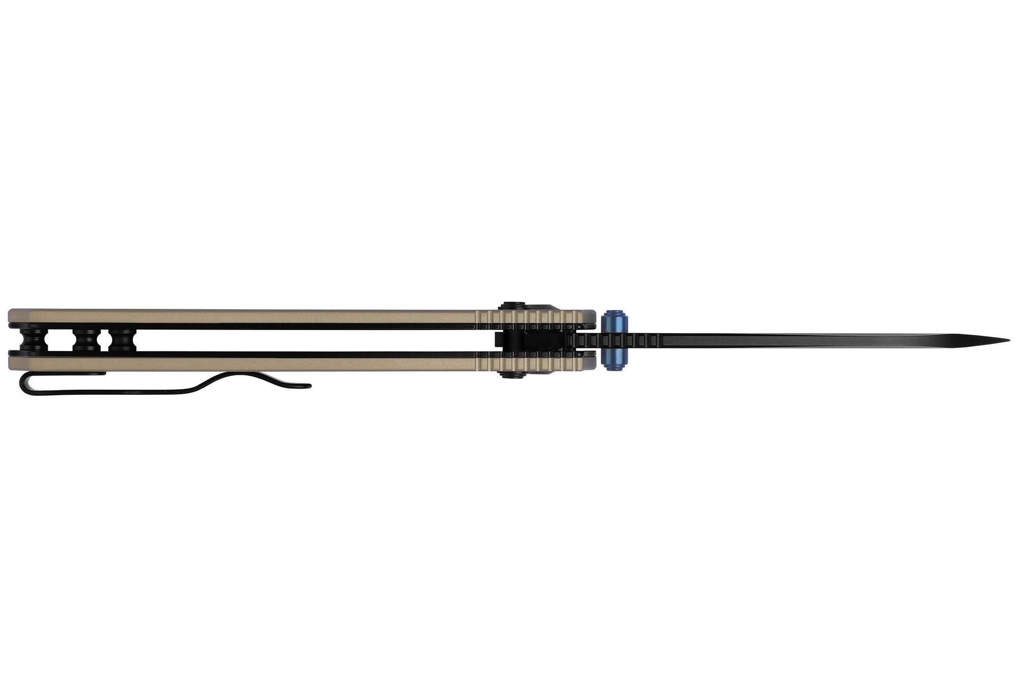 Proprietárny Clutch Lock mechanizmus od Kizer zaručuje stabilné nasadenie čepele a pevné uzamknutie, zatiaľ čo obojstranné thumb study umožňujú plynulú, obojručnú manipuláciu jednou rukou pre maximálne pohodlie pri používaní.