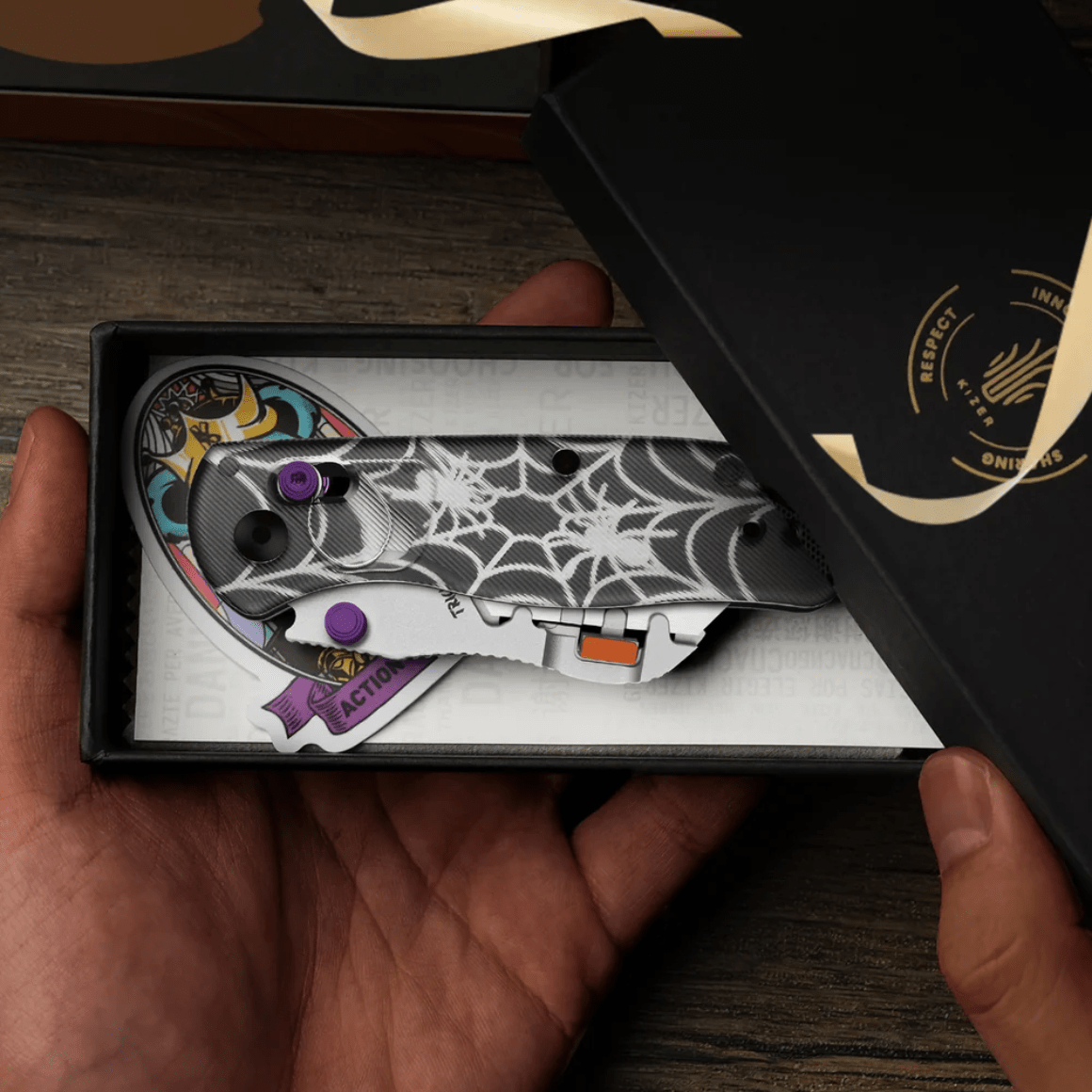 Zatvárací vreckový nôž Kizer Uti BEAR 2 50Cr15MoV Acrylic V3619JHW2 - Halloween edícia, navrhnutý Azom, táto špeciálna edícia kombinuje praktický dizajn s halloweenskym štýlom.