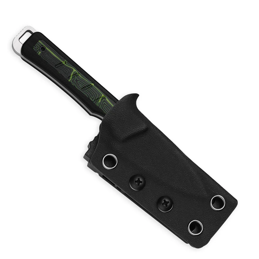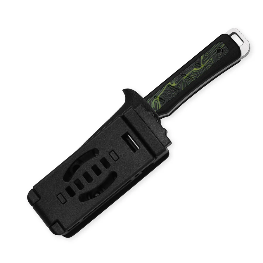 Tento nôž môžete nosiť na krku, ako nôž do topánky alebo ako vreckový nástroj—jeho všestrannosť sa hodí do každej situácie. Odolné puzdro z Kydexu zaisťuje dlhodobú ochranu a jeho nastaviteľný retenčný systém podporuje rôzne polohy nosenia: horizontálne, vertikálne alebo pripevnené k batohom, opaskom či ramenám. Je tiež kompatibilný s MOLLE, čo umožňuje jednoduché pripevnenie k taktickým taškám alebo výstroju pre bezpečné a stabilné nosenie, nech už vás vaše dobrodružstvá zavedú kamkoľvek.