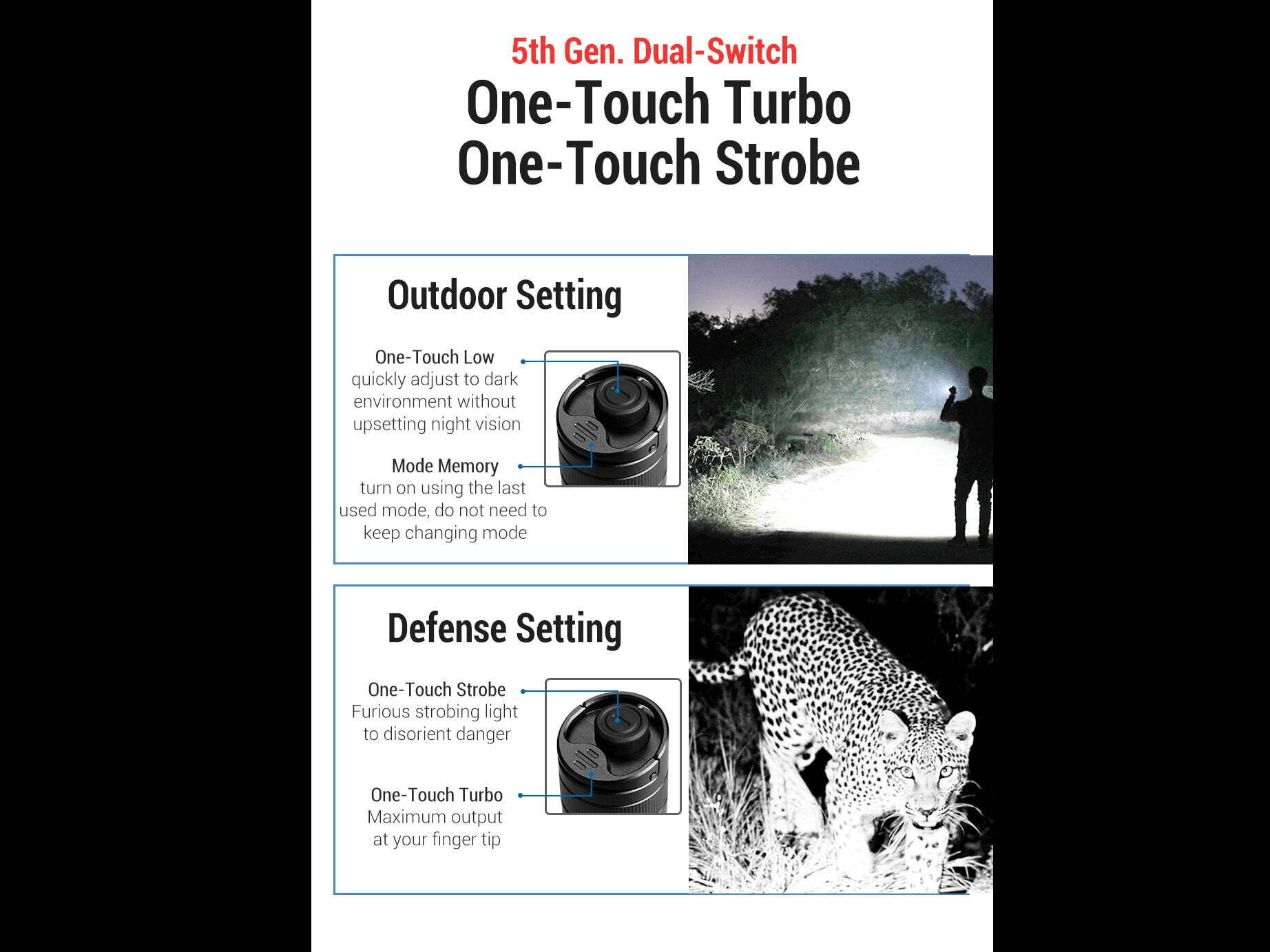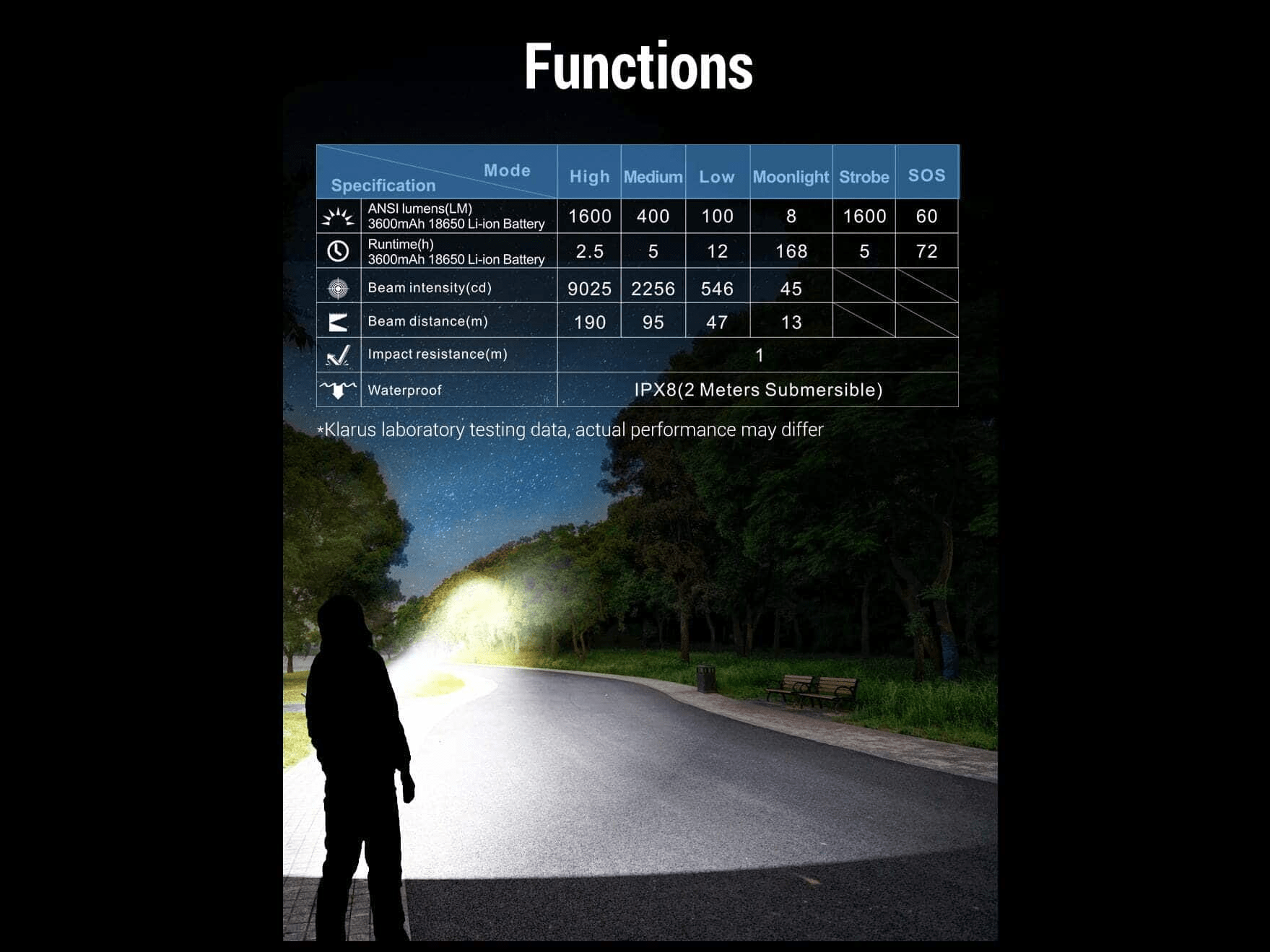 Taktické nastavenie: Špeciálne navrhnuté pre použitie v sebaobrane a na taktické využitie. Klasické ovládanie Klarus XT série, Jedným dotykom Strobo, Jedným dotykom Vysoký režim, jednoduchá a plná obsluha v akomkoľvek prostredí alebo situácii.