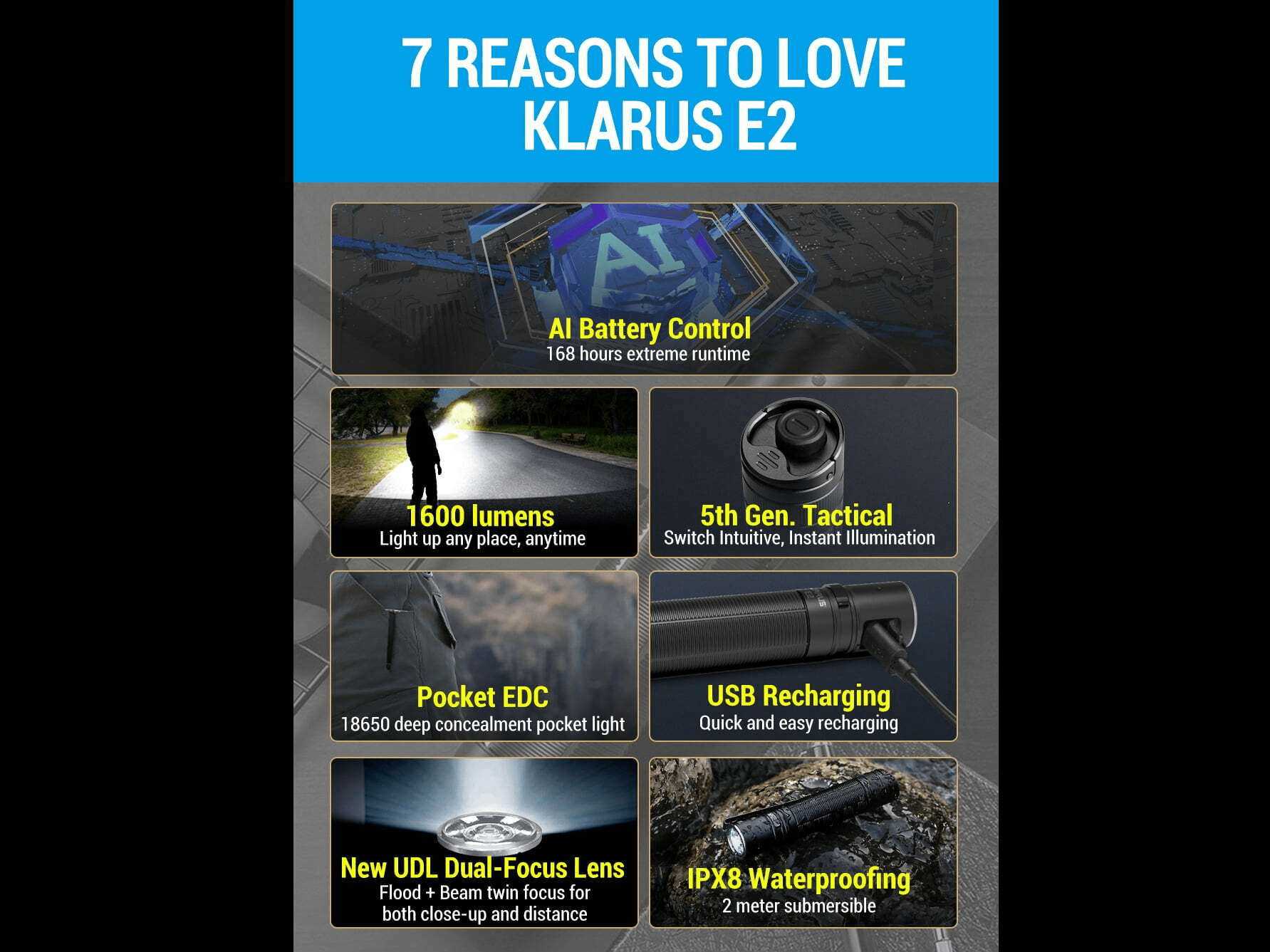 KLARUS 1600 Lumens EDC Pocket Flashlight E2 - KNIFESTOCK