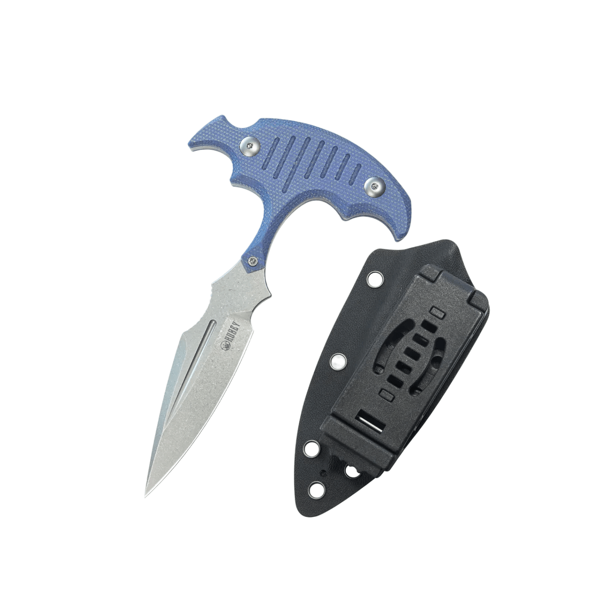 Rukoväť: Rukoväť noža je vyrobená z modrej Micarty, čo je materiál známy svojou pevnosťou, ľahkosťou a odolnosťou voči vlhkosti. Micarta poskytuje bezpečný a pohodlný úchop aj počas dlhodobého používania. Ergonomický dizajn rukoväte prispieva k maximálnemu komfortu a bezpečnosti pri manipulácii.