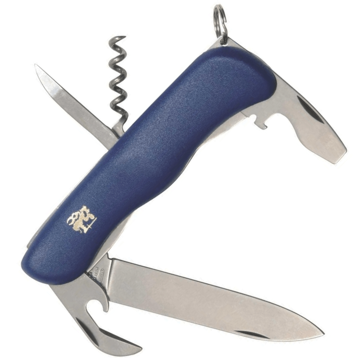 Vreckový viacúčelový zatvárací nôž 115-NH-5/AK PRAKTIK má praktické využitie v prírode, pri kempingu a táborení, či pri prácach na záhrade. Čepeľ je z kvalitnej ocele 420, nôž obsahuje aj otvárač na fľaše, skrutkovač, odstraňovač izolácie drôtov, otvárač na konzervy, vývrtku, bodec a krúžok na kľúče. Rukoväť je vyrobená z odolného plastu modrej farby s ikonou českého leva. Možnosť zakúpiť si kožené puzdro.