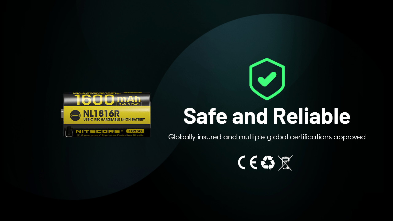 Nitecore NL1816R je výkonná USB-C nabíjateľná batéria s kapacitou 1600mAh, určená pre použitie s MT1C Pro. Táto batéria má trvalý vybíjací prúd 3A a je ideálna pre zariadenia, ktoré vyžadujú stabilný a spoľahlivý zdroj energie. Je vybavená pokročilými bezpečnostnými funkciami, ako sú prebitie, nadmerné vybitie a skratovanie.