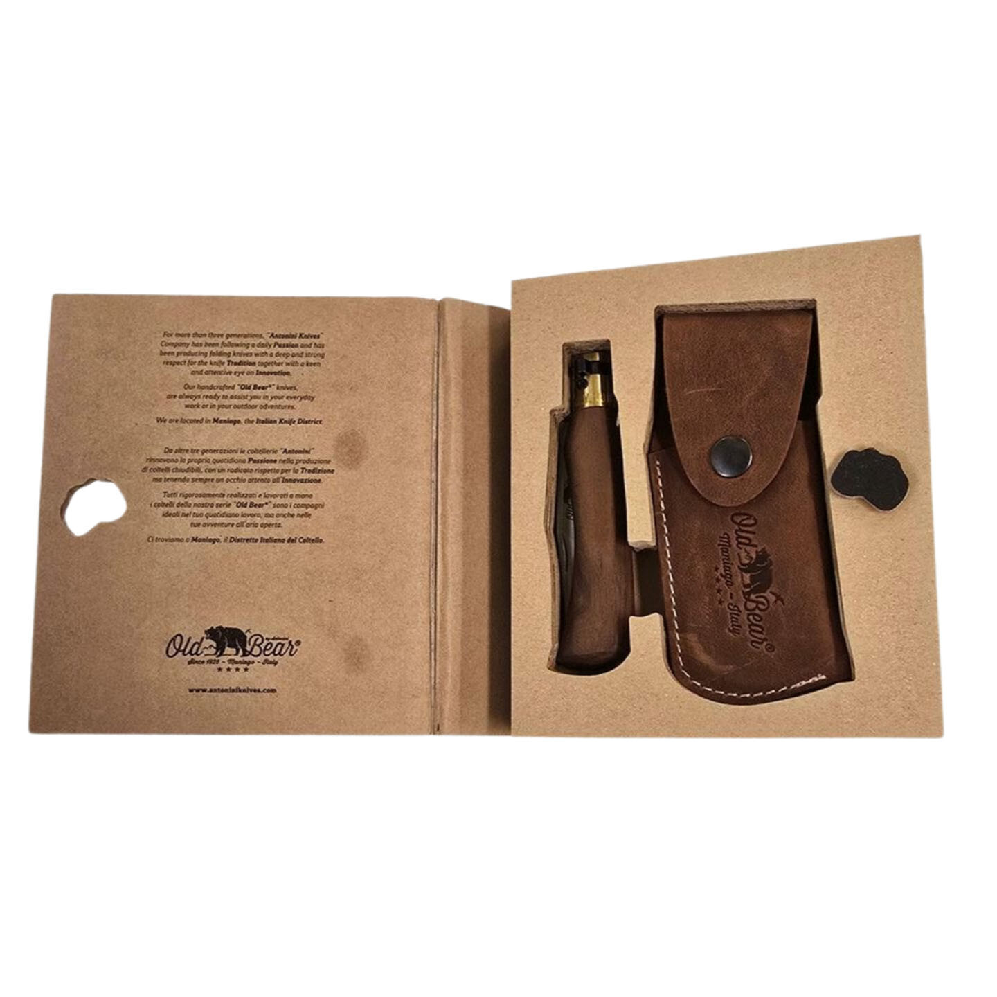 Rad vreckových nožov Old Bear je ručne vyrábaný v Maniago, Taliansko. Vynikajúca kvalita povrchových úprav a jedinečný patentovaný mechanizmus uzamykania čepele robia tieto nože výnimočnými.
