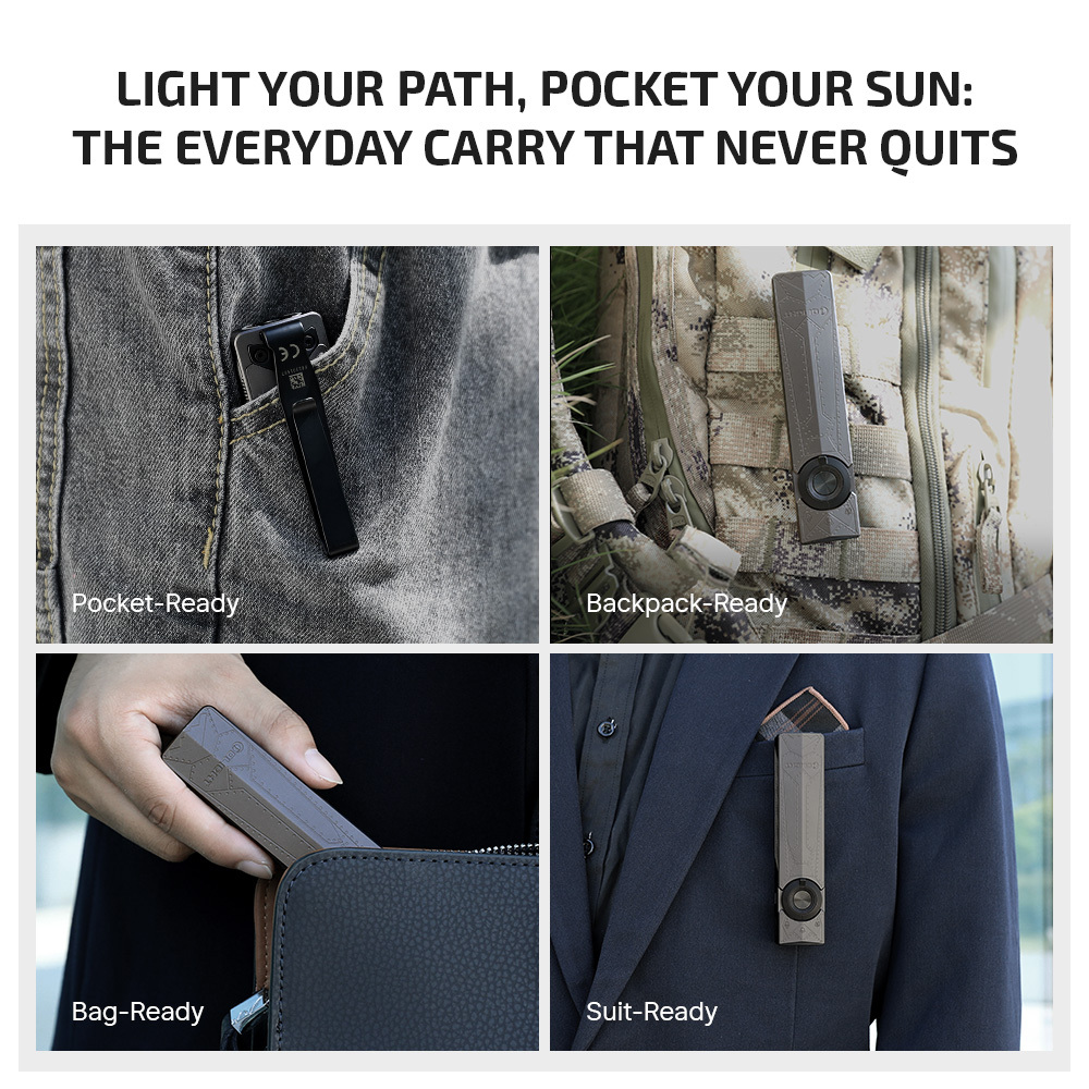 Dokonale vrecková veľkosť: Plochý dizajn sa pohodlne zmestí do vrecka, takže si ho sotva všimnete. Baterka ArkPro EDC je navrhnutá tak, aby ste mohli cestovať naľahko a pohybovať sa voľne.