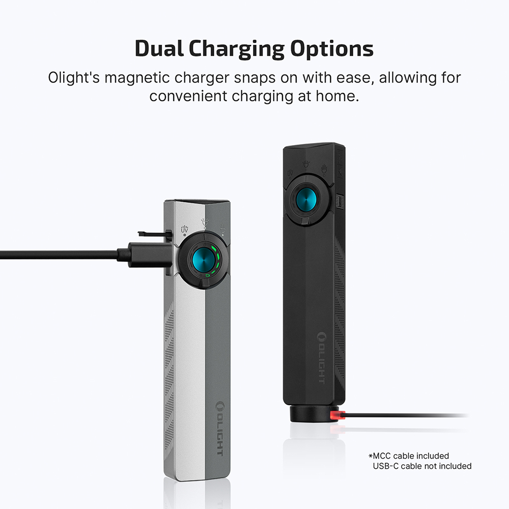 Jednoduché nabíjanie a ovládanie: Dvojité nabíjanie ArkPro cez USB-C a magnetickú dokovaciu stanicu prekonáva tradičné obmedzenia, ľahko prepína medzi tromi režimami osvetlenia pomocou intuitívneho kruhového voliča s vyhradeným tlačidlom pre zelený lúč pre flexibilné použitie.
