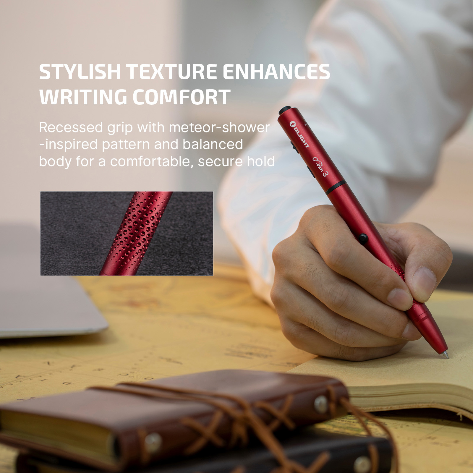 4-v-1 Multifunkčné pero s LED svetlom: Klip obsahuje biele svetlo s intenzitou 120 lúmenov, dvojstupňové červené svetlo pre nočné videnie a červený SOS režim pre núdzové situácie. Ďalej je vybavené mäkkým svetlom na písanie v tme a presným zeleným laserovým ukazovateľom triedy 3R s dvoma úrovňami jasu pre jasné a sebavedomé prezentácie.
