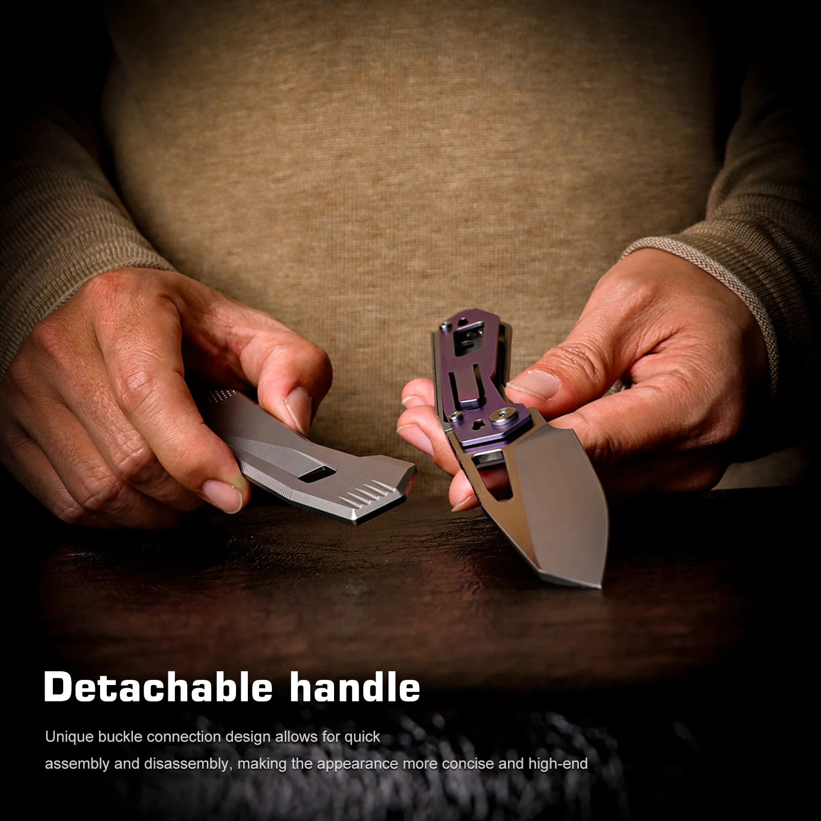 Rukoväť je zhotovená z titánu, čo je vynikajúci materiál pre luxusné rukoväte nožov.