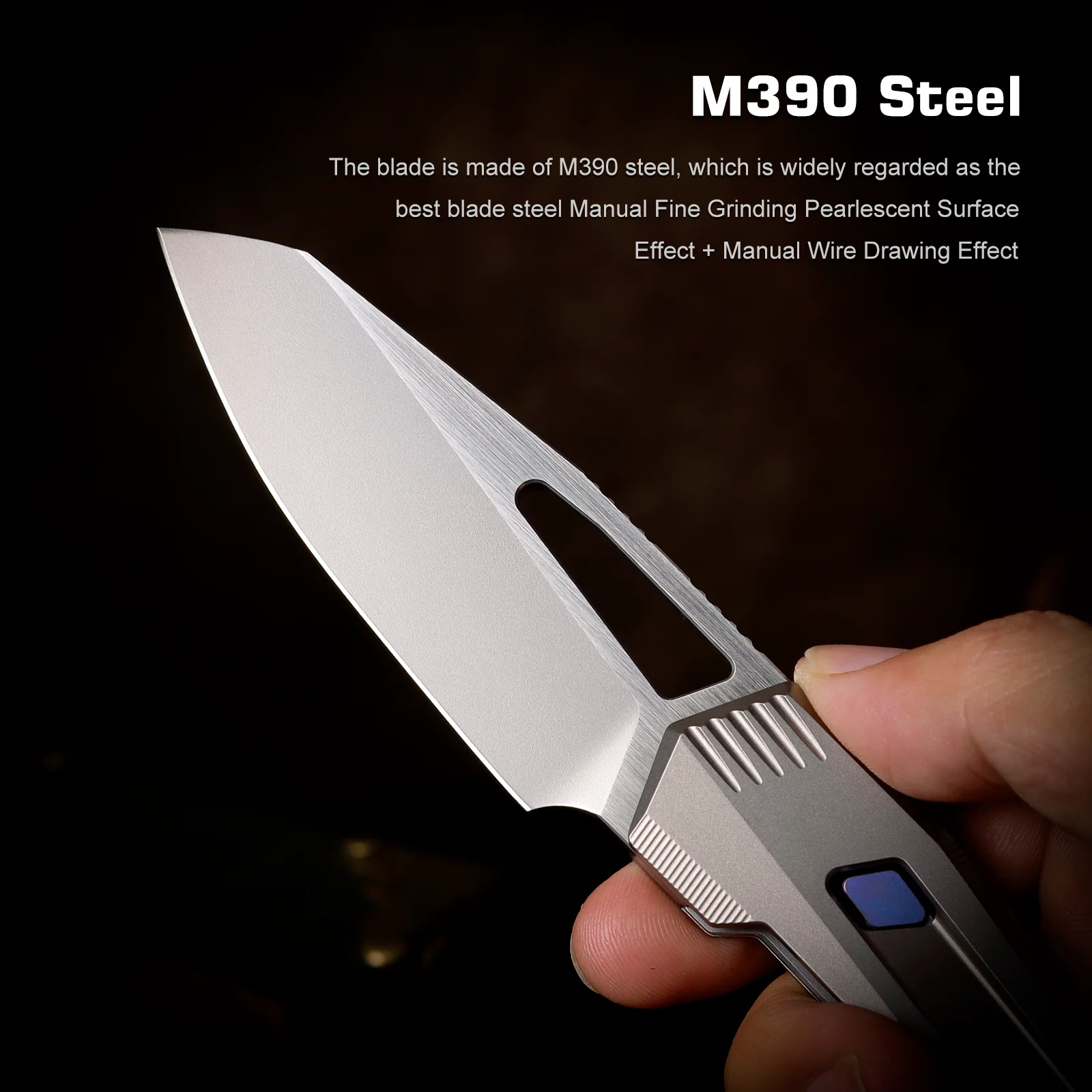Čepeľ je vyrobená z ocele M390, ktorá je všeobecne považovaná za najlepšiu oceľ pre čepele.