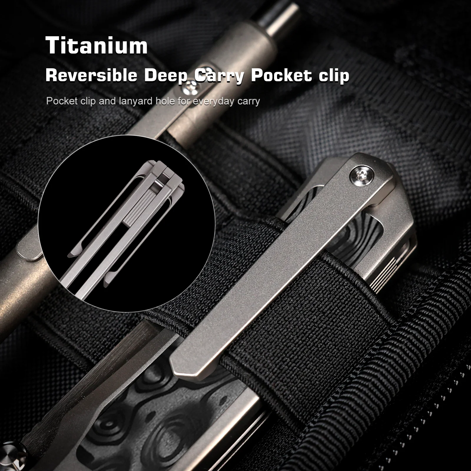 Titánový, obojstranný deep carry pocket clip pre každodenné nosenie.