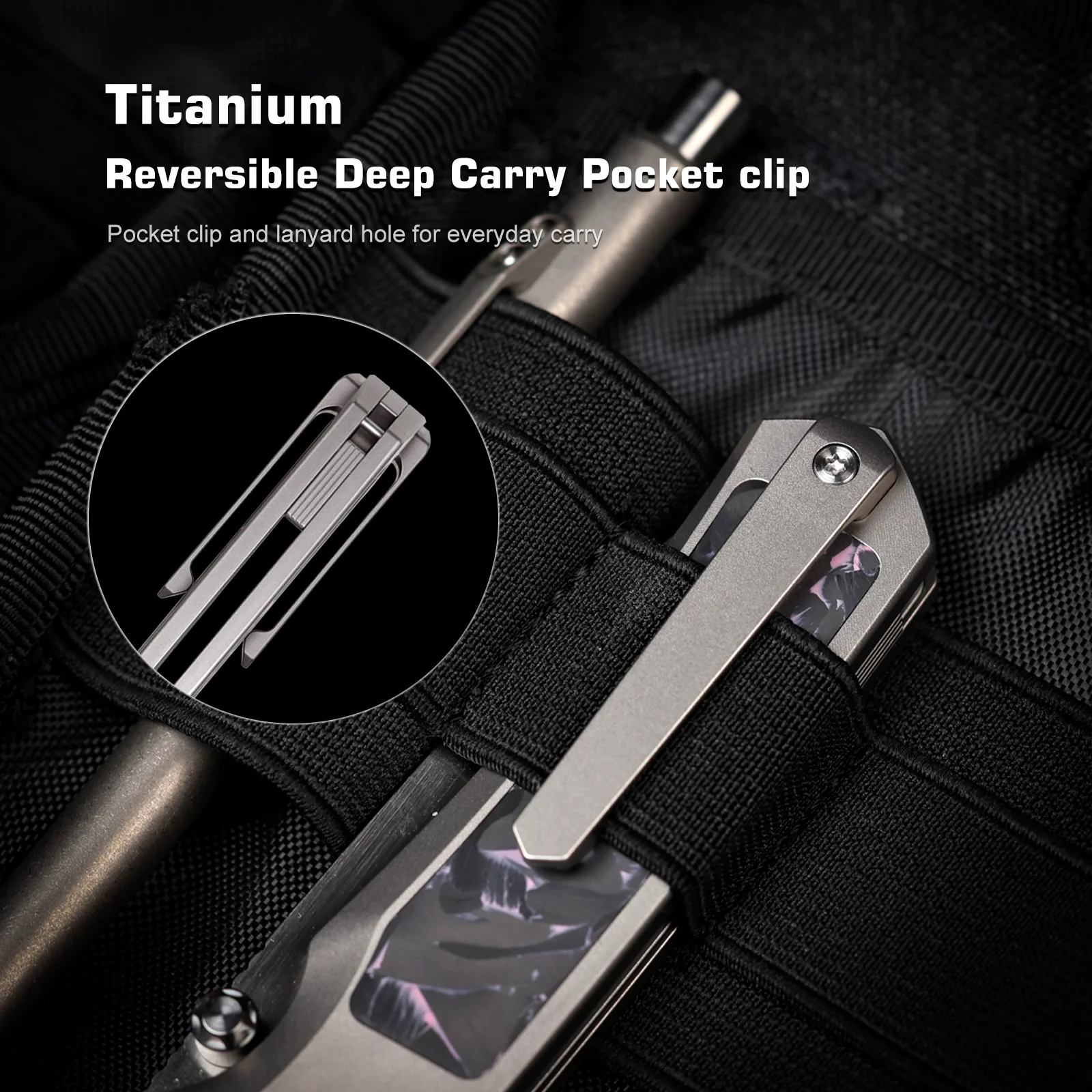 Titánový, obojstranný deep carry pocket clip pre každodenné nosenie.