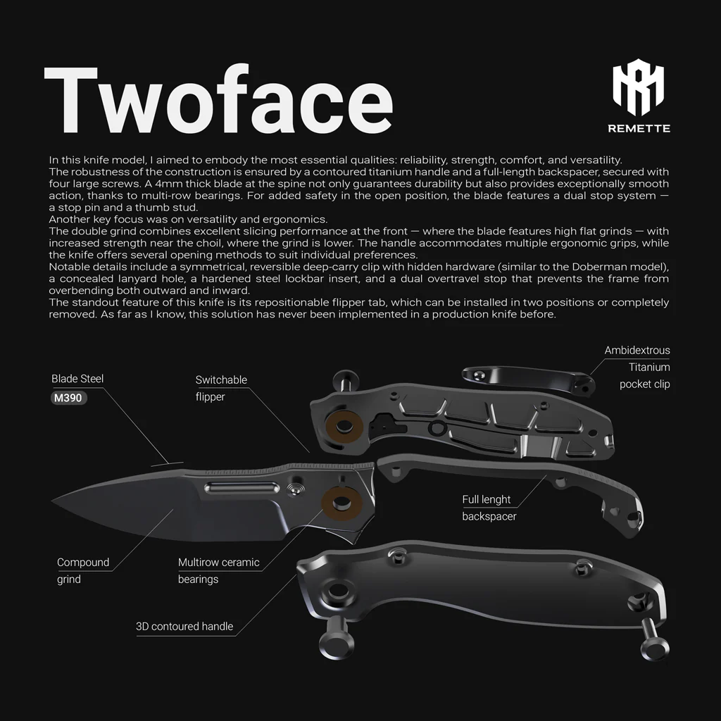 V tomto modeli noža sme sa snažili stelesniť najdôležitejšie vlastnosti: spoľahlivosť, pevnosť, pohodlie a všestrannosť. Robustnosť konštrukcie je zabezpečená tvarovanou rukoväťou z titánu a plnohodnotným backspacerom, ktorý je upevnený štyrmi veľkými skrutkami.