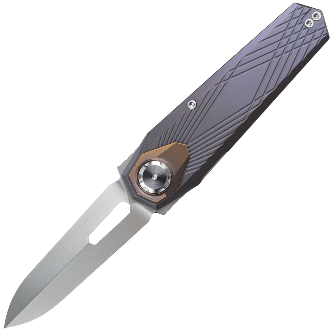 Rukoväť je z titánovej zliatiny s grilling blue úpravou, čo je vynikajúci materiál pre luxusné rukoväte nožov.