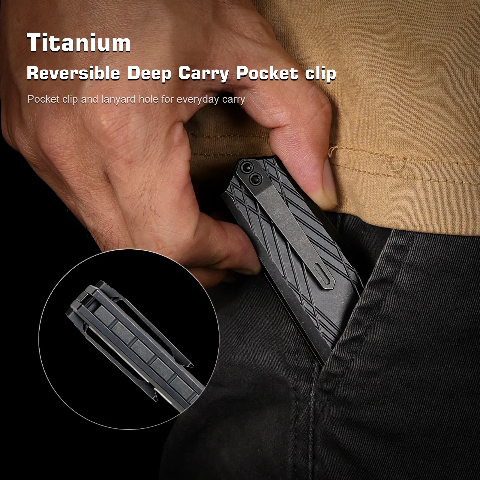 Titanový obojstranný vreckový klip a otvor na šnúrku pre každodenné nosenie.