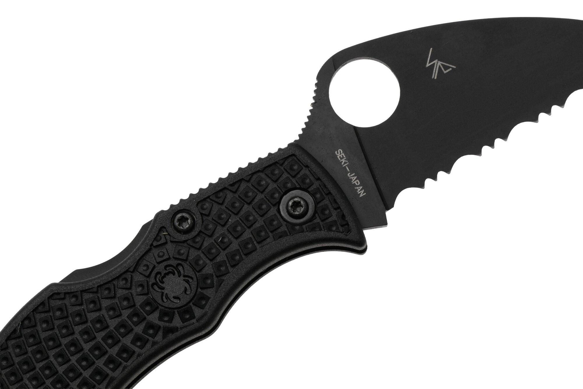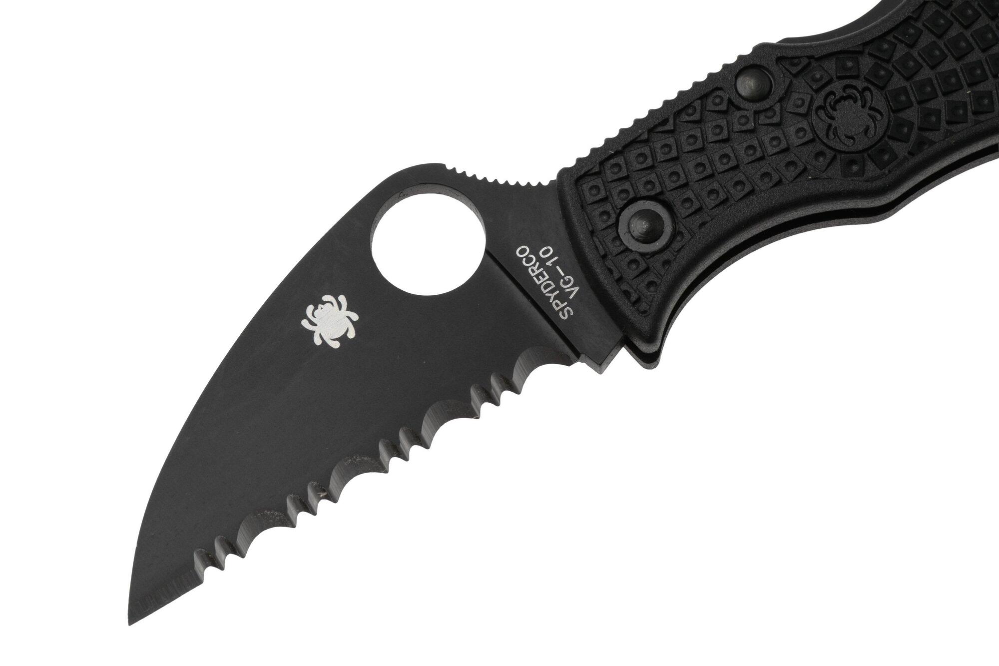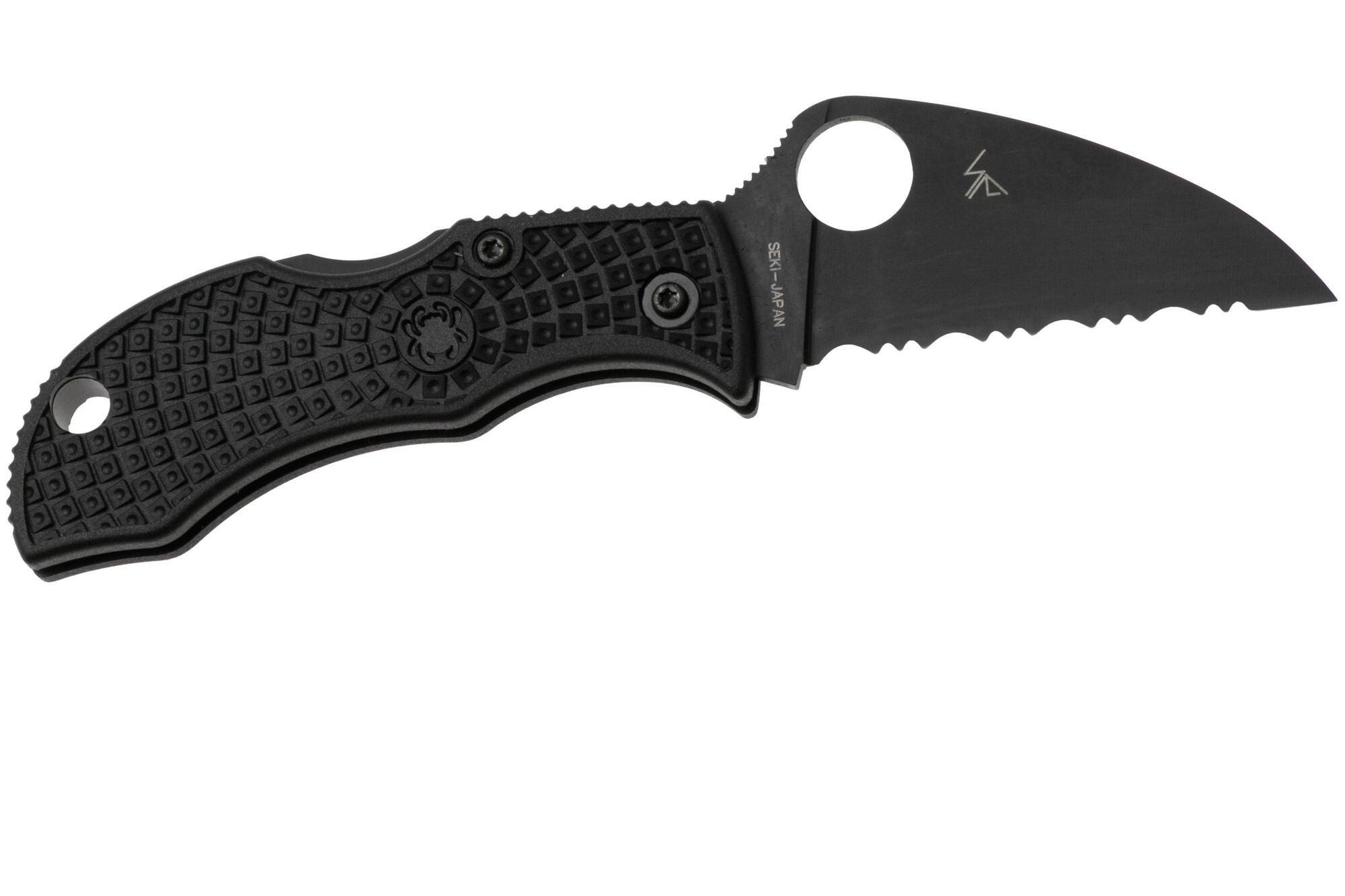 Manbug Wharncliffe je dostupný s čepeľou s povrchovou úpravou satin alebo v celkom čiernom prevedení s povrchovou úpravou čepele z titánového karbidu (TiCN) a čiernym povrchom rukoväťového hardvéru. Obe verzie ponúkajú na výber konfiguráciu ostria PlainEdge™ alebo plne zúbkovanú SpyderEdge™.