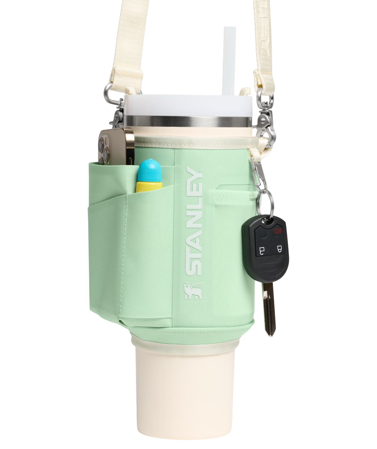 Vitajte v svete hydratácie bez použitia rúk—s vreckami! Vyrobený z recyklovaného polyesteru, kde sa štýl stretáva s funkčnosťou v žiarivej palete farieb. Majte All Day 1.2L Quencher® Carry-All vždy po ruke, aby ste dosiahli svoje ciele v hydratácii. Omotajte pás, ktorý je lemovaný vzorom s krídlovým medveďom, okolo vášho 1.2L Quencher® a zabezpečte ho dvojitým zapínaním na cvoky. Prehoďte popruh cez telo, držte sa svojich blízkych a užívajte si zábavu. S tromi vreckami, z ktorých jedno je dostatočne priestranné na uloženie telefónu, zatiaľ čo druhé vrecko nižšie uchováva tenkú peňaženku alebo obal na karty. Menšie sieťované vrecko pojme kompaktné slúchadlá, balzam na pery alebo malé doplnky, bez ktorých sa nezaobídete. Premyslený dizajn znamená aj špeciálny obal na slnečné okuliare. Dokonca je tu aj klip na vaše kľúče! Odpojte popruh a vymeňte farby so svojím najlepším priateľom. Kamkoľvek vás dobré časy zavedú, pohybujte sa voľne a zostaňte hydratovaní so Stanley.