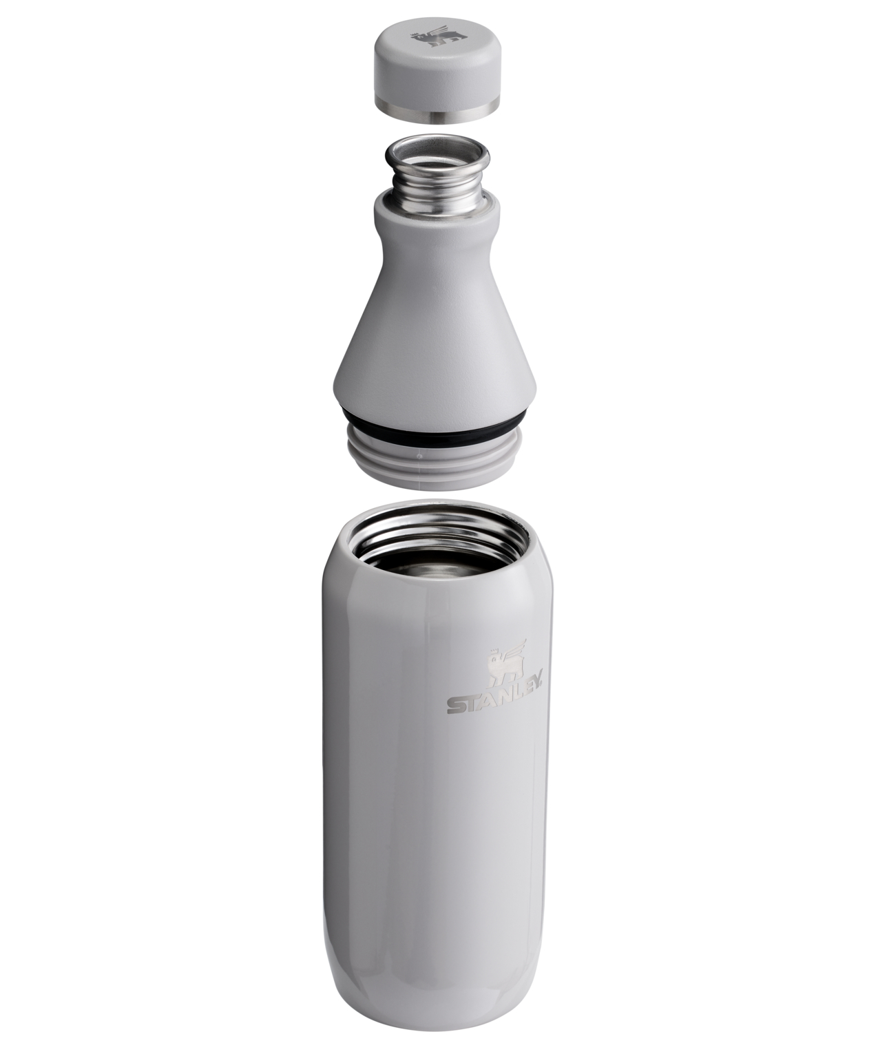 Táto Elegantná fľaša je ideálna na celodennú, každodennú hydratáciu. Vyrobená z 90% recyklovanej nehrdzavejúcej ocele s dvojdielnym otváraním, jedným na pitie a druhým na ľad a čistenie. Hrdlo fľaše je z jednostennej nehrdzavejúcej ocele s plastovým závitovým golierom a stlačeným tesnením. Telo využíva dvojstennú nehrdzavejúcu oceľ s vákuovou izoláciou, ktorá pomáha udržať ideálnu teplotu vášho nápoja. Logo Stanley je vyryté do fľaše, čo dokonale kontrastuje s prechodovým povrchom z lesklého na matný.