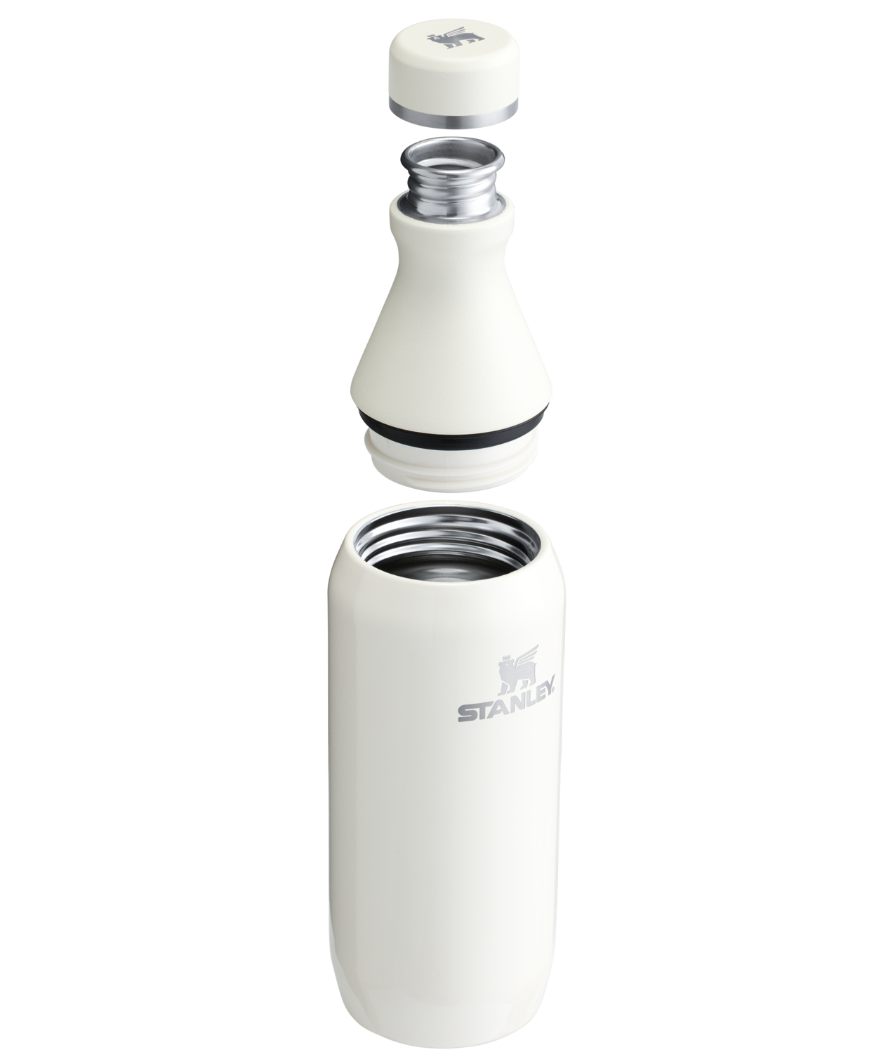 Táto elegantná fľaša je ideálna na celodennú, každodennú hydratáciu. Vyrobená z 90% recyklovanej nehrdzavejúcej ocele s dvojdielnym otváraním, jedným na pitie a druhým na ľad a čistenie. Hrdlo fľaše je vyrobené z jednovrstvovej nehrdzavejúcej ocele s plastovým závitovým golierom a kompresným tesnením. Telo využíva dvojvrstvovú nehrdzavejúcu oceľ s vákuovou izoláciou, ktorá pomáha udržať ideálnu teplotu vášho nápoja. Logo Stanley je vyryté do fľaše, čo dokonale kontrastuje s prechodovým povrchom z lesklého na matný.