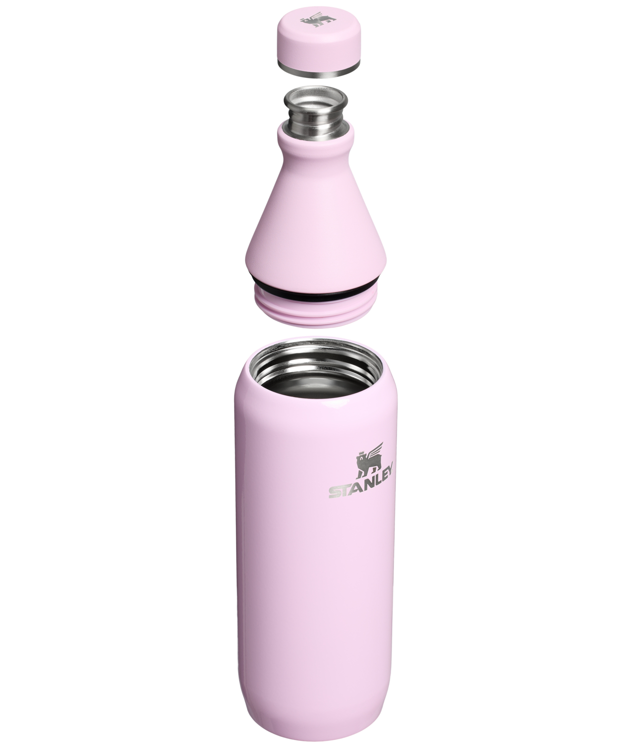 Táto elegantná fľaša je ideálna na celodennú, každodennú hydratáciu. Vyrobená z 90% recyklovanej nehrdzavejúcej ocele s dvojdielnym otváraním, jedným na pitie a druhým na ľad a čistenie. Hrdlo fľaše je vyrobené z jednovrstvovej nehrdzavejúcej ocele s plastovým závitovým golierom a kompresným tesnením. Telo využíva dvojvrstvovú nehrdzavejúcu oceľ s vákuovou izoláciou, ktorá pomáha udržať ideálnu teplotu vášho nápoja. Logo Stanley je vyryté do fľaše, čo dokonale kontrastuje s prechodovým povrchom z lesklého na matný.