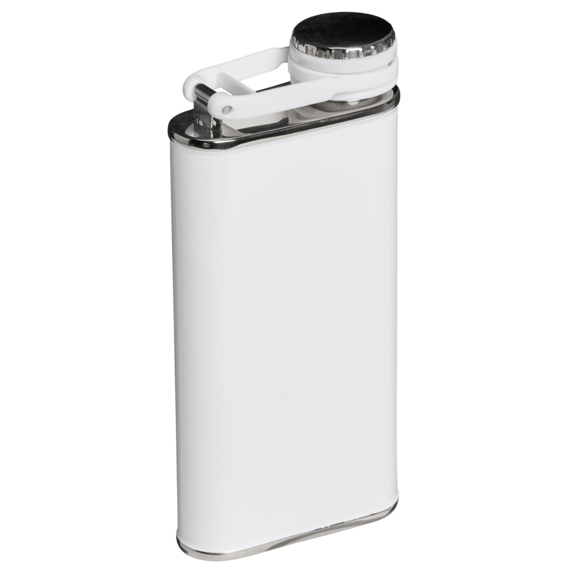 Placatka/butylka/ploskačka STANLEY The Easy-Fill Wide Mouth Flask 230 ml Frost Gloss v lesklej bielej farbe, s retro vzhľadom a štíhlym dizajnom pre jednoduché prenášanie. Má široký otvor pre jednoduché dopĺňanie (nie je potrebný lievik).
