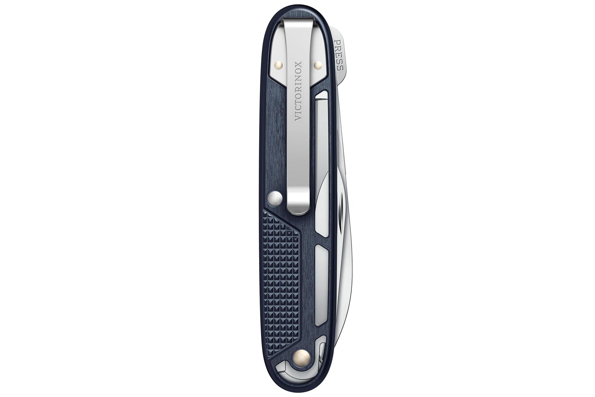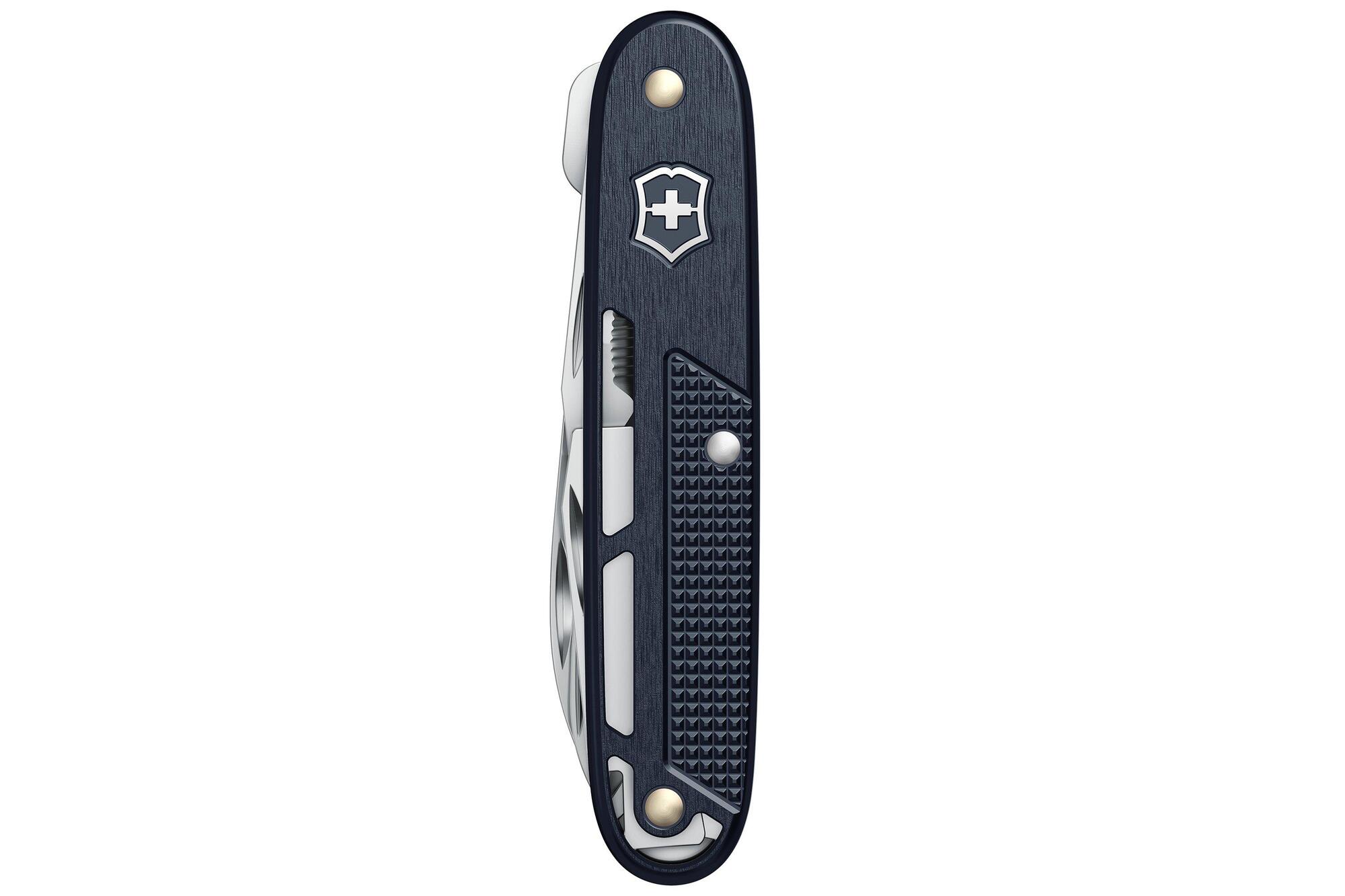 Veľká čepeľ / Nožnice / Otvárač na krabice / Skrutkovač 3 mm / Pilník na nechty / Čistič nechtov / Otvárač na fľaše / Skrutkovač 7 mm / Odizolovač drôtov / Carry clip