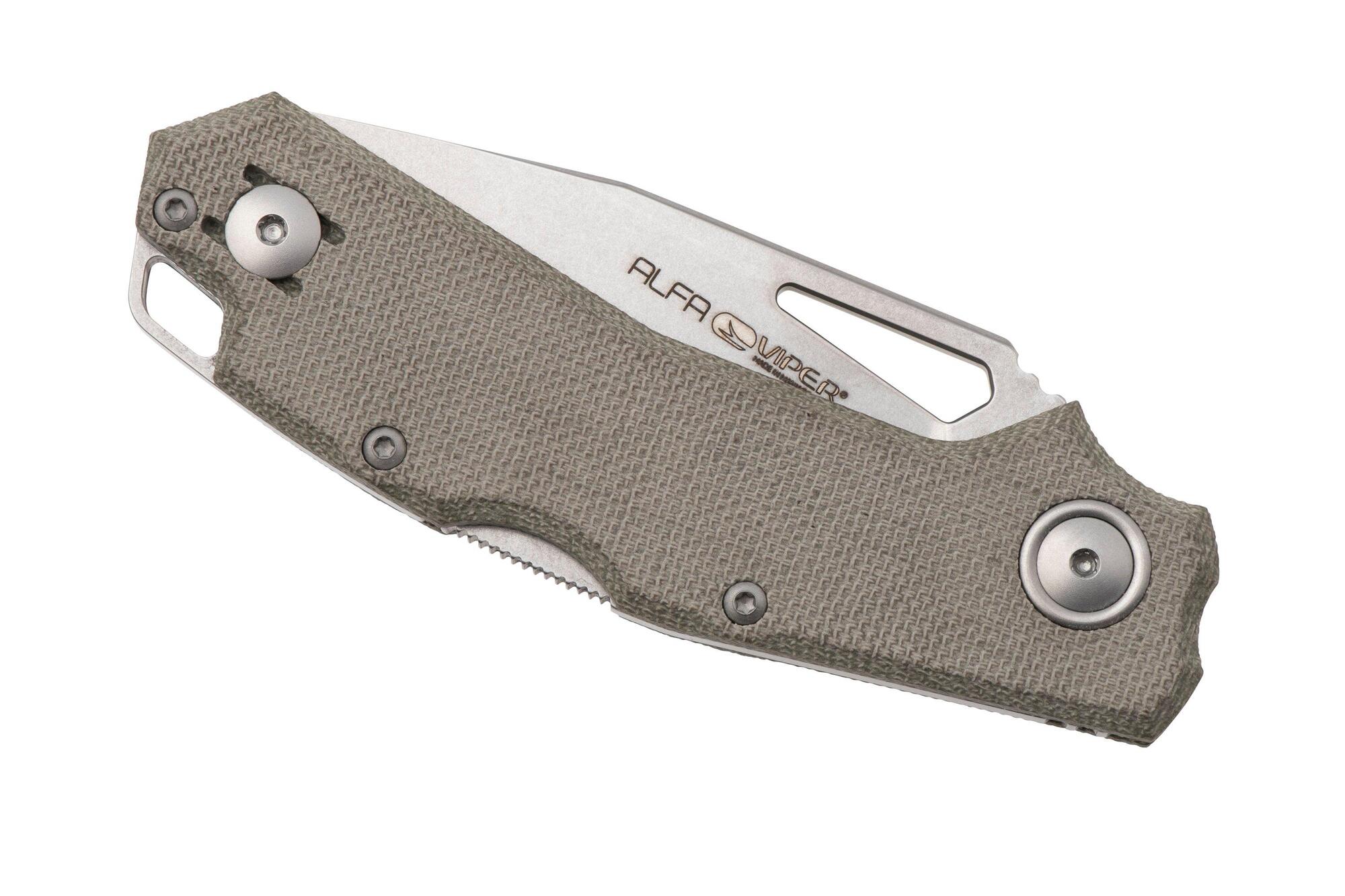 Viper Alfa je elegantný lockback zatvárací nôž navrhnutý Simonom Tonollim ako kompaktný a schopný nástroj na každodenné nosenie. Je postavený okolo čepele z nerezovej ocele CPM-MagnaCut, ktorá poskytuje ideálnu rovnováhu medzi udržaním ostria, odolnosťou voči korózii a húževnatosťou - čo ho robí vhodným pre reálne použitie. Upravený profil Wharncliffe pridáva presnosť a kontrolu pri rezaní, najmä pri detailnej práci.