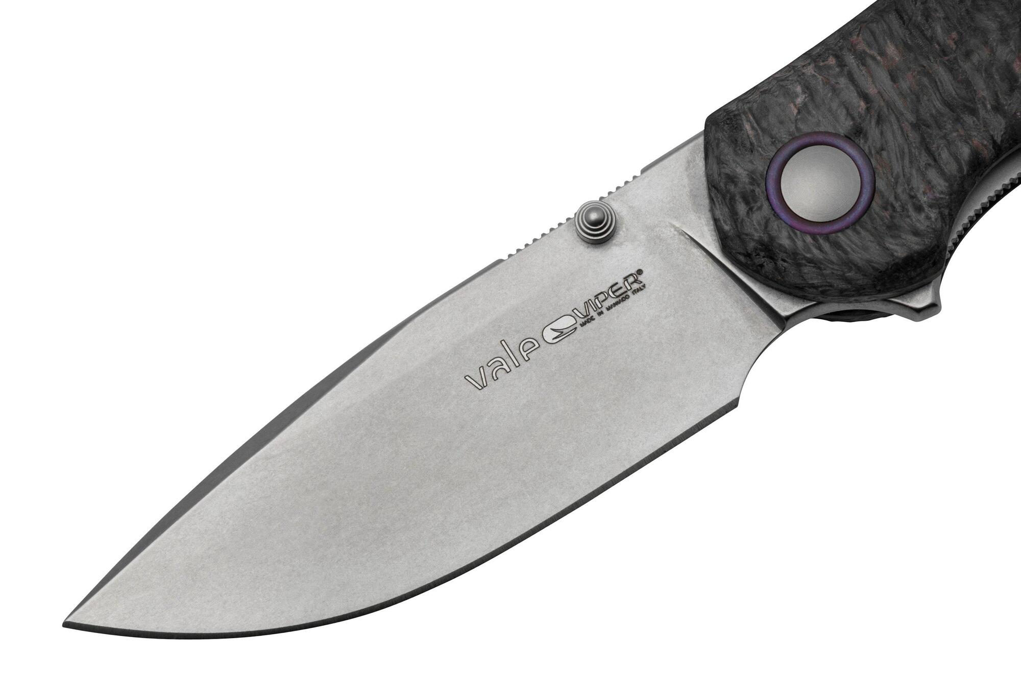 Vale je robustný flipper nôž s osvedčeným liner lockom. Viper predstavuje Vale s čepeľou z nehrdzavejúcej ocele CPM-MagnaCut v tvare drop point a modernými materiálmi rukoväte, ako sú Micarta, carbon fiber a rôzne druhy dreva.