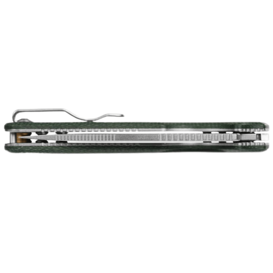 Rukoväť z zelenej Micarty poskytuje pohodlný úchop, navrhnutý pre stredne veľké až veľké ruky, a ponúka dodatočnú bezpečnosť vďaka prednému choilu a špeciálnemu choilu na rukoväti, ktoré zabraňujú skĺznutiu.