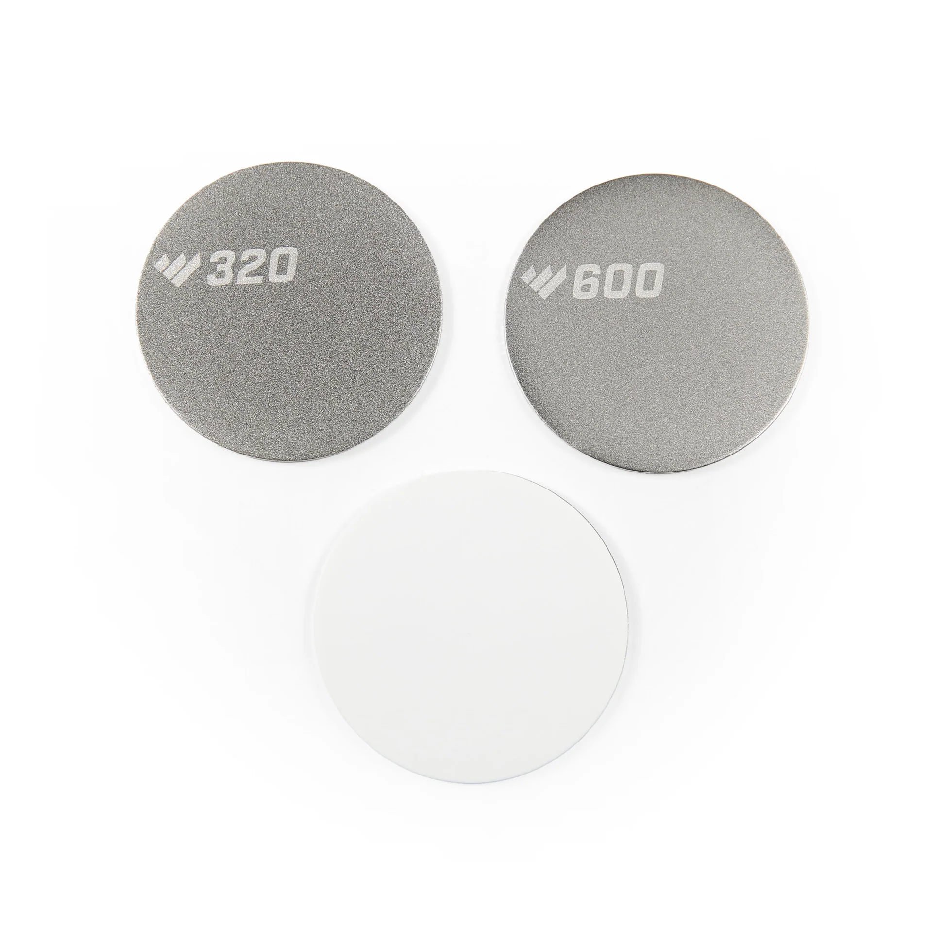 · Vymeniteľné brúsne materiály umožňujú jednoduchú výmenu diamantových kotúčov s hrubosťou 320 a 600 a keramického honovacieho kameňa, aby ostrenie zostalo rýchle a jednoduché.