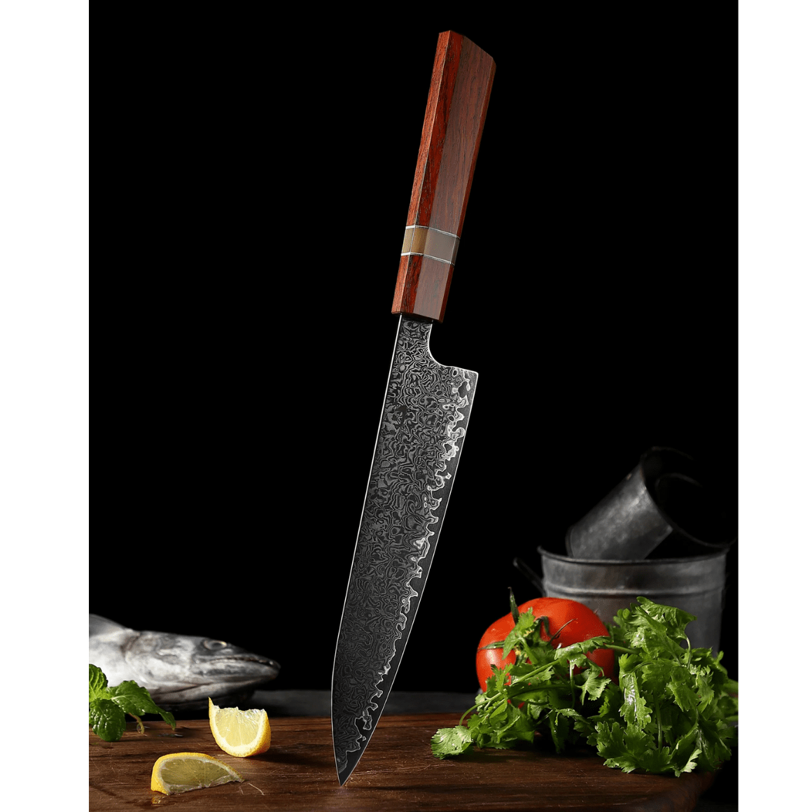 Čepeľ je vyrobená z 67-vrstvovej VG10 damascénskej ocele s kovanou a vysoko leštenou povrchovou úpravou s kyselinovým leptaním. Jemný konvexný výbrus ostria vytvára pekný oblúkový tvar a extrémne ostrý výkon.