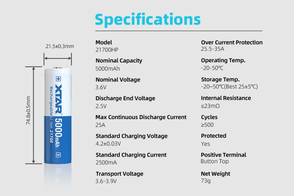 Xtar 21700HP 5000mAh-XTAR 5000mAh protected rechargeable battery